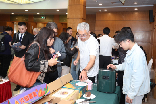 当晚18时30分,交流会现场气氛热烈。为了让嘉宾直观感受岭南地标食材的魅力,主办方在现场特别搭建了特色食材展位区。来自全省各地的优质食材企业纷纷亮出“看家本宝”:东源县板栗发展总公司带来了颗粒饱满、甘甜粉糯的东源板栗;珠海壹条鱼食品科技有限公司展示了深海养殖的高品质海鲜;深圳市后山茶业有限公司则呈现了醇香的名茶;古井集团带来了国家地理标志产品——被誉为酒中牡丹的古井贡酒酒。此外,韶关市兴顺佳农业科技发展有限公司、广东锦泰农副产品有限公司等企业也展出了众多极具地方特色的农副产品。