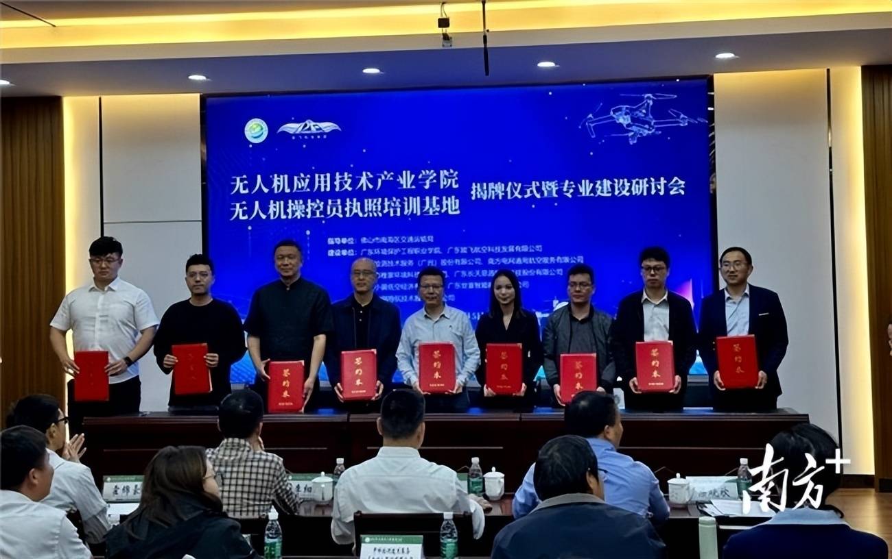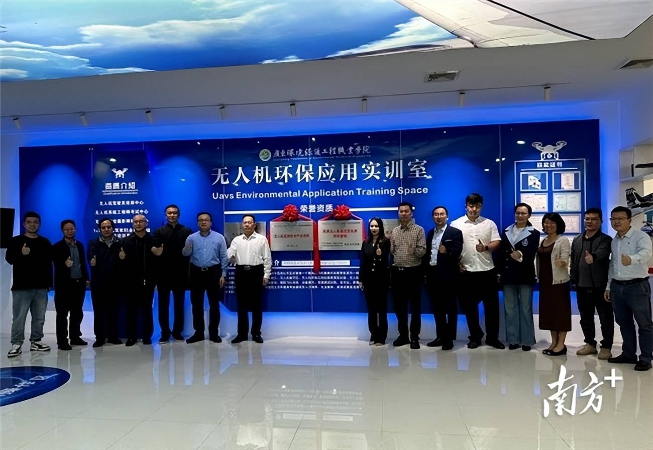 ▲该产业学院及无人机操控员执照培训基地由广东环保职院牵头,联合能飞航空等8家行业领先企业共同建设